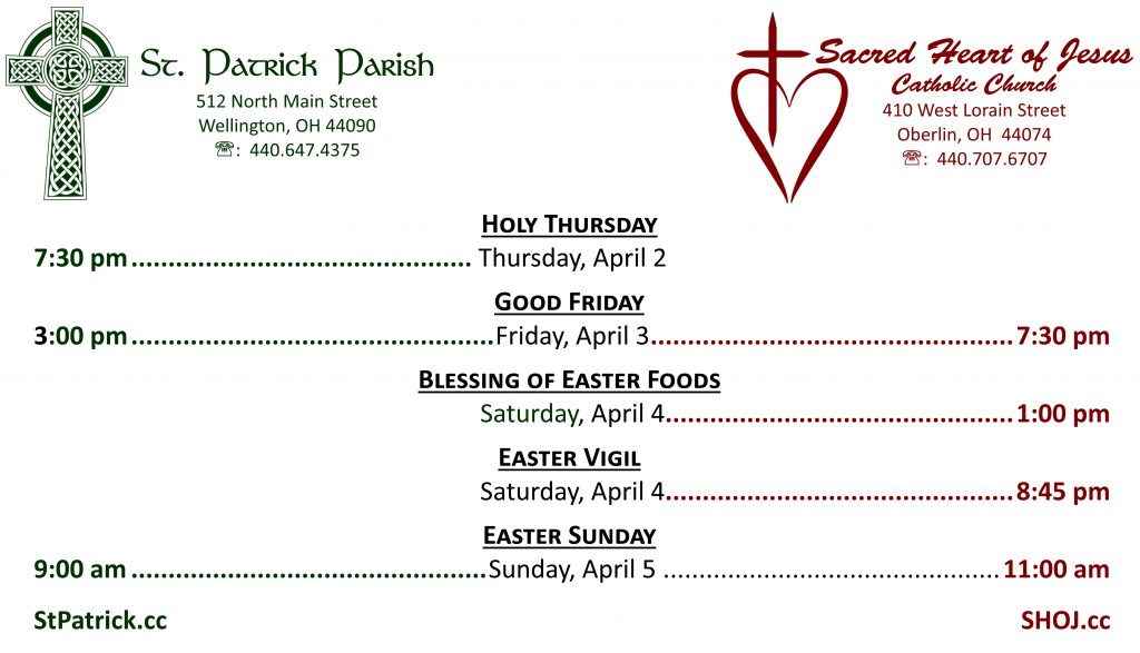 This is the Holy Week and Easter Mass schedule for 2026. PLEASE NOTE the location of each service.